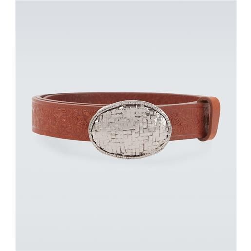 PACDE cintura western retro in vera pelle di mucca jeans fiore in rilievo uomo, caff, 105cm