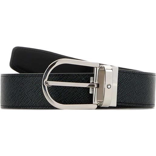 Armani Exchange mens essenial, double face, metal logo plaque belt, nero/blu navy, 34