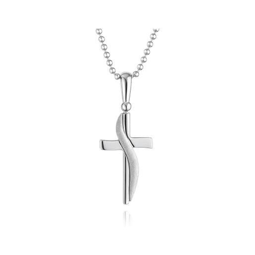 HALUKAKAH collana pendente croce per ragazzi bambini adolescenti, 2,0ct diamanti coltivati in laboratorio, placcato in oro bianco platino, argento sterling 925, catena a scatola 40cm, gioielli religiosi