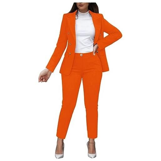 Generic tailleur donna eleganti completo giacca e pantalone donna business maniche lunghe tinta unita ufficio slim fit pantaloni e giacca completo tuta due pezzi set (orange, xxl)