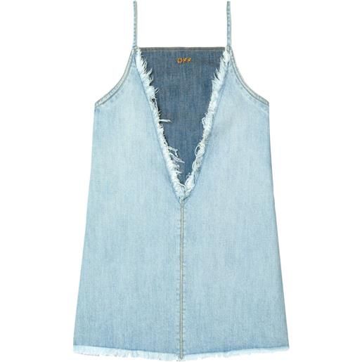 Off-White abito corto denim con frange - blu