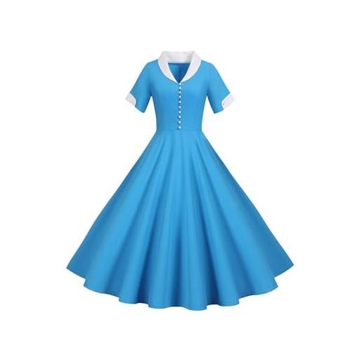 TYQQU donne abito con colletto a mantellina stretchy abito vintage a manica corta abito elegante da cocktail blu xl