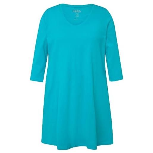 Ulla Popken maglia dal taglio lungo e svasato con laccetti, scollo a v e maniche a 3/4 turchese scuro 50+ 825969740-50+
