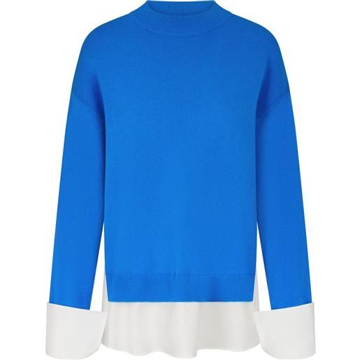 ShangSRS maglione donna scollo a v pullover abbinamento dei colori della stampa leopardata manica lunga autunnale invernali lavorato a maglia moda sciarpa sciolta ritaglio tops (l, blu)