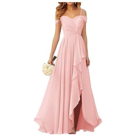 YIANN vestiti da ballo da donna con spalline sottili in raso con spacco e corsetto, abito da sera lungo formale, rosa cipria, 40