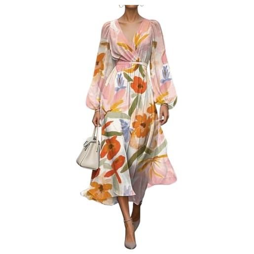 Suncolour abito lungo da donna in chiffon floreale a maniche lunghe monospalla abito lungo da festa abito da cocktail