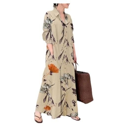 Youlee donna inverno autunno lino di cotone vestiti con tasche yellow