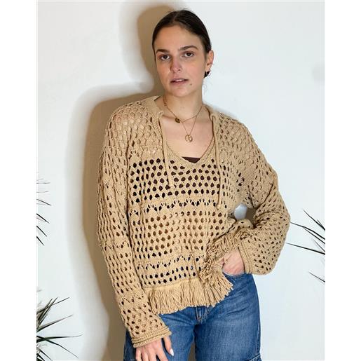 KONTATTO maglia traforata con frange e scollo a v - KONTATTO