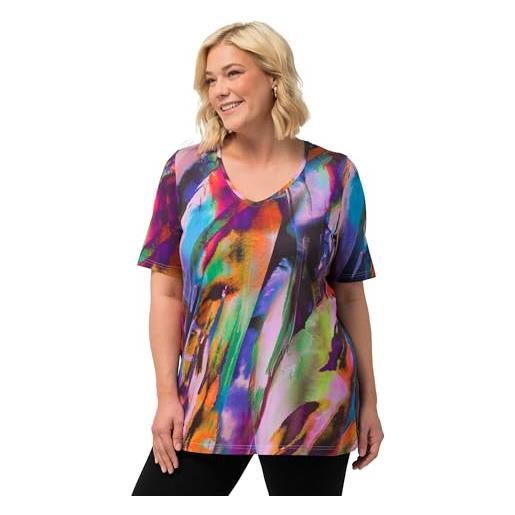 Ulla popken maglia dal taglio lungo e svasato con gradiente, scollo a v e mezze maniche nero 66+ 827554100-66+