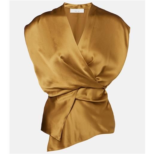 COLLECTION PRIVEE? satik cold-shoulder satin top - marrone