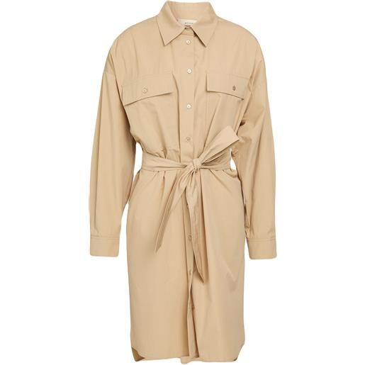 BOSS vestito a vestaglia in cotone elasticizzato con cintura regolabile, colore neutro