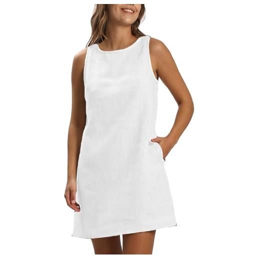 Amazhiyu lino abito a senza maniche donna, corto estivo 100% lino abito con tasche e scollo rotondo bianco l