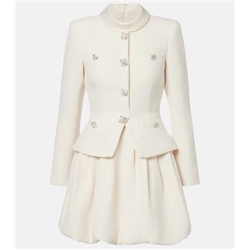 Oscar de la Renta miniabito in tweed di misto cotone con ricamo