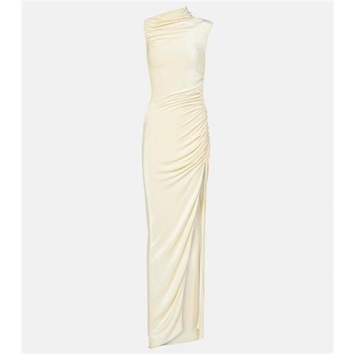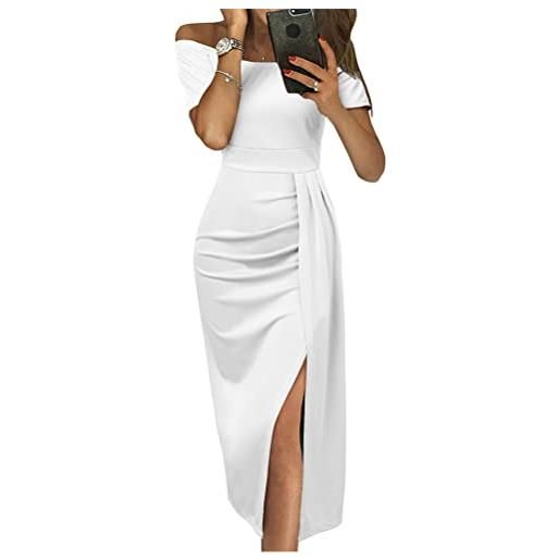 Minetom abito da sera cerimonia donna manica corta velluto midi vestito elegante tinta unita vestito lungo f bianco l