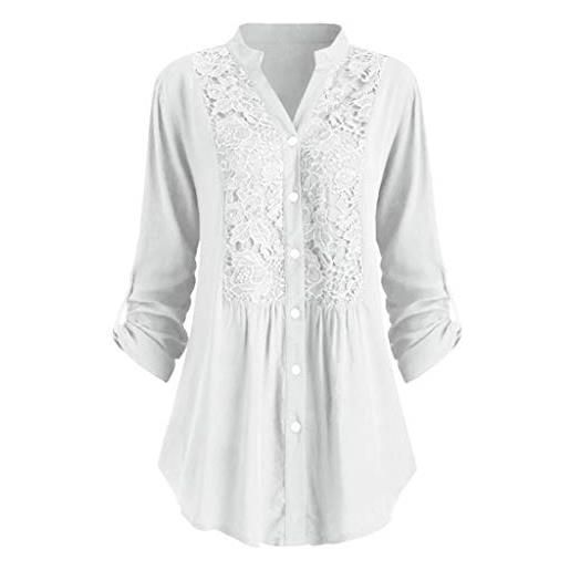 HAOLEI camicetta maniche lunga oversize cotone e lino donna comode blusa in pizzo causal chic estiva taglie forti camicia tinta unita scollo a v per la primavera e l'estate leggera confortevole e traspirante