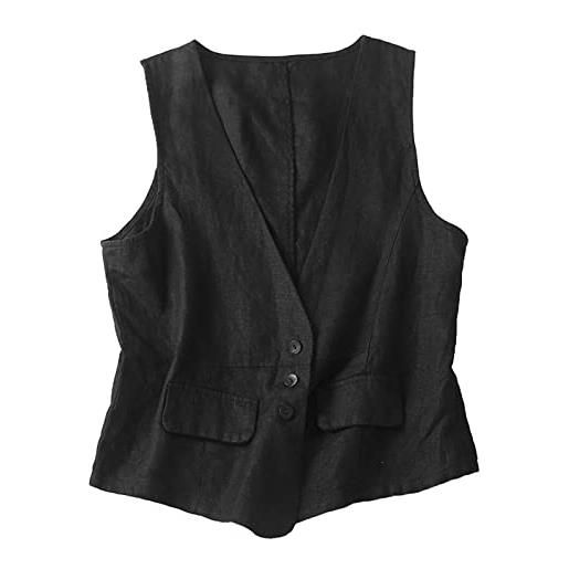 PAIDAXING gilet da donna in cotone e lino, vestibilità ampia, senza maniche, con tasche, casual, scollo a v, con bottoni, gilet, leggero, tinta unita, estivo, bianco, m