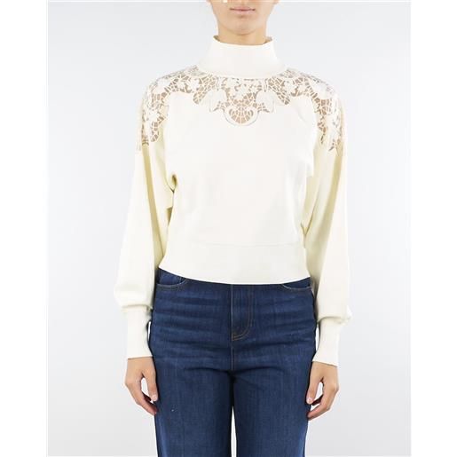 TWIN SET maglia panna-nero in misto mohair con pizzo