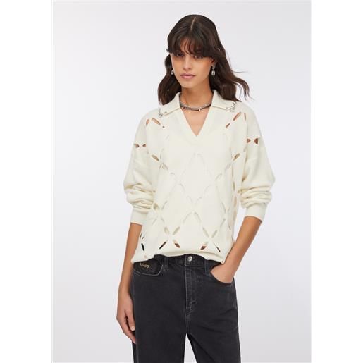 Liu Jo maglia animalier donna girocollo tf5172 (it, testo, l, regular, regular, panna)