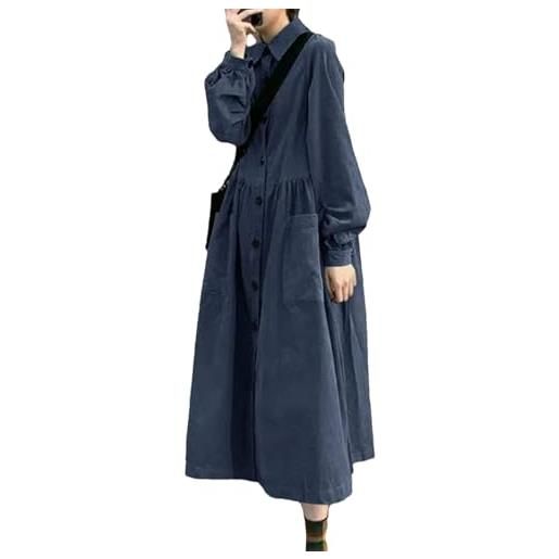 Goolecrimp abito invernale in velluto a coste da donna con tasche abito in velluto a coste con collo alto e velluto spesso di media lunghezza abito lungo caldo in taglie forti (blu, 4xl)
