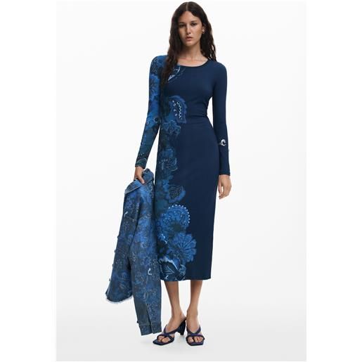 Desigual, vestito midi a fiori, donna, blu, l