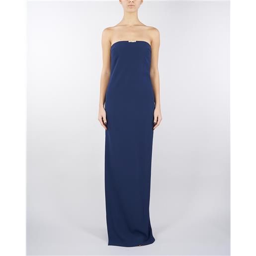 ELISABETTA FRANCHI abito red carpet oltremare in doppio crêpe leggero con dettaglio gioiello