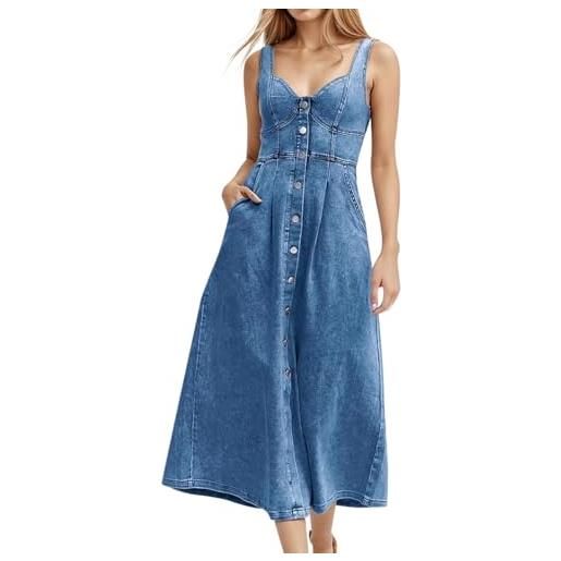 Generisch abito vintage in jeans 2025 con spalline sottili, abbottonatura frontale per un look casual primavera/estivo, prendisole ariose grandi taglie, blu, xxl