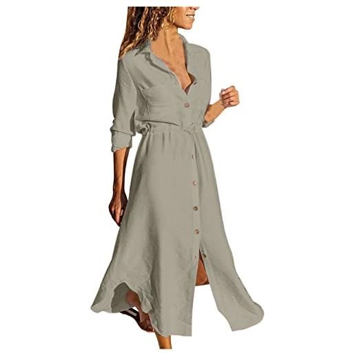 Generic vestiti eleganti donna casual abito elegante women cotton linen up maxi dress with pocket long sleeve summer casual beach shirt dress abito lungo donna elegante vestiti estivi curvy (dark blue xxxl)