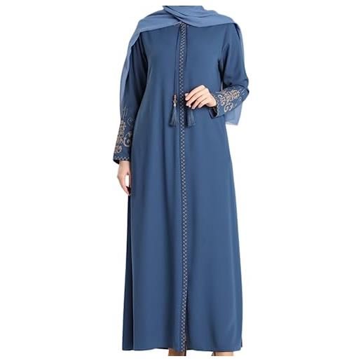 istanbul styles maniche ricamate da donna abaya e ricamate sul lato della cerniera manica lunga lunghezza fino al pavimento moda islamica (small, blu)