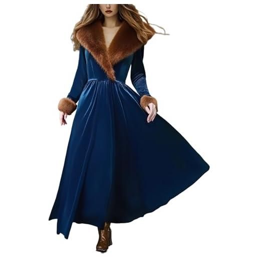 Vhersily abito western da donna sexy deep v collo in pelliccia sintetica maxi abito invernale caldo lungo per carnevale cerimonia slim fit regalo natalizio capodanno costume da principessa seducente