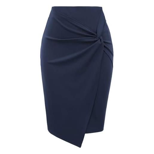 Generic gonne estive abbigliamento donna avvolgente davanti elasticizzato aderente gonna a tubino ginocchio ol lavoro ufficio lady-blu navy-xxl