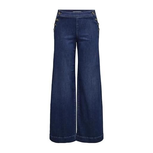 ONLY jeans femminili a gamba larga onlmadison vita alta ampio taglio gamba jeans, denim blu scuro, 28w x 34l