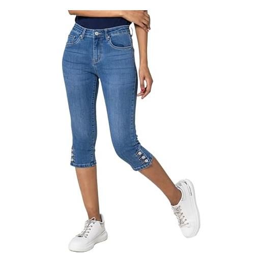 Nina Carter p516 pantaloni capri slim fit jeans a vita alta, estivi, blu scuro (p516-2), l szczupły
