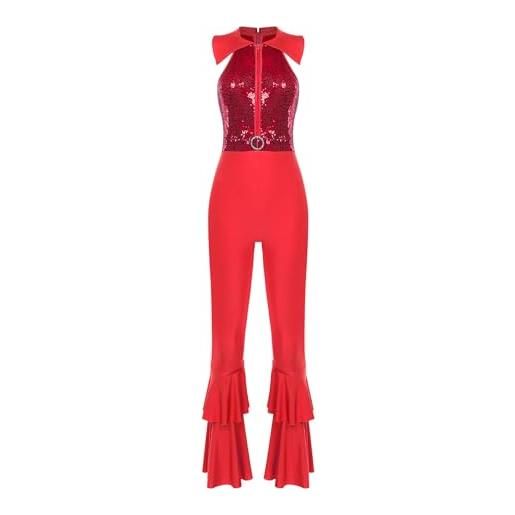TTAO costume da discoteca da donna anni '70, senza maniche, con pantaloni a zampa, hippie, halloween, carnevale, rosso, xl