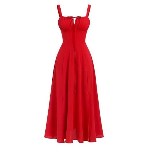 OBEEII corsetto floreale da donna, abito midi senza maniche, spalline sottili, taglio basso, estivo, boho, prendisole con stampa floreale, bustino aderente, giallo, l