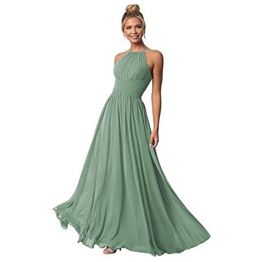 YIANN abito da damigella d'onore in chiffon con pieghe lungo una linea abito da ballo per le donne yiax176, verde salvia, 34