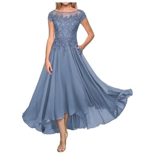 Hanna Nikole abito da sera da donna in chiffon con scollo a v, #a03 grigio blu, 62 it