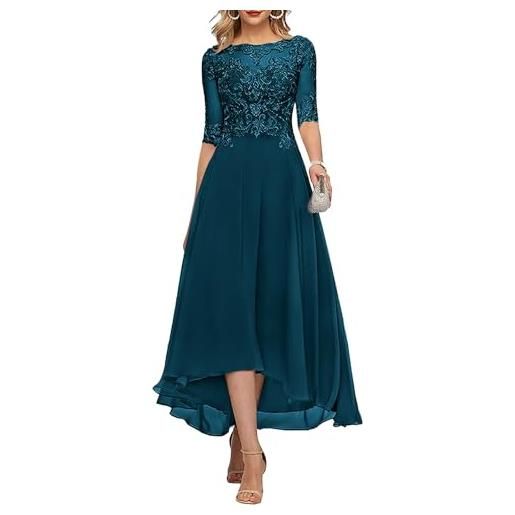 KURFACE abito da donna in pizzo con applique per madre della sposa, abito da sposa a trapezio, mezze maniche, abito da sera per feste, grigio, 56