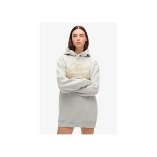 Superdry per donna. W8011756a abito con cappuccio grigio luxe con logo metallizzato [3189546], casual, cotone, manica lunga