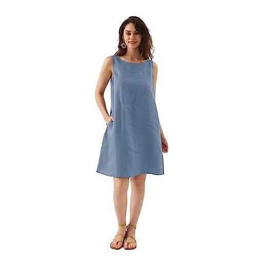Amazhiyu lino abito a senza maniche donna, corto estivo 100% lino abito con tasche e scollo rotondo lino l