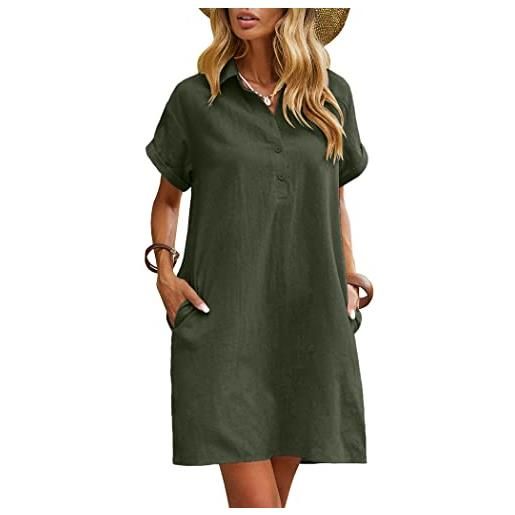 Zeagoo abito estivo da donna, 100% cotone, lino, lunghezza al ginocchio, casual, da spiaggia, a maniche corte, estivo, per il tempo libero, con tasche, verde militare, xxl