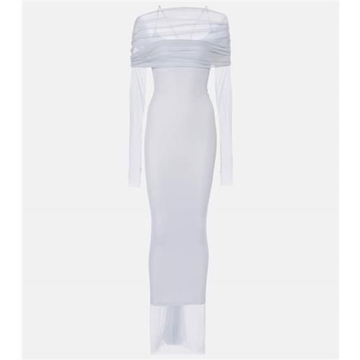 Costarellos abito lungo yesenia in tulle e pizzo con ricamo