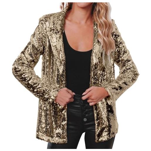 HAOLEI blazer paillettes donna cardigan donna eleganti vintage con paillettes top giacca da sera per cerimonie nuzialiia cocktail camicetta con scollo a v e maniche a lunghe festive ideale per feste e serate
