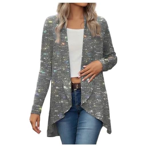 MJGkhiy blazer donna elegante lunga con paillettes moda aperto davanti giacche da abito e blazer glitter cardigan taglie forti jacket curvy per capodanno sera cerimonia