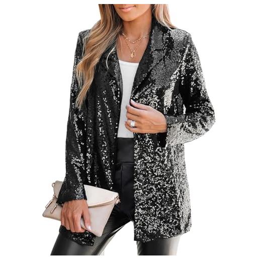 CUPSHE - blazer da donna con paillette e glitzer, giacca con revers a maniche lunghe, apertura frontale, per festa e cerimonia, cardigan, abbigliamento da esterno, nero , m