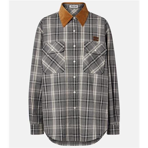 Miu Miu camicia in flanella di cotone con velluto a coste