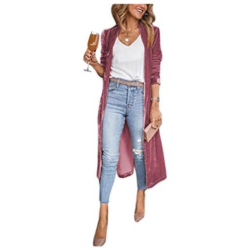 ORANDESIGNE cappotto lungo donna elegante cerimonia giacca velluto casuale maniche lunghe cardigan giubbotto vintage trenchcoat tailleur blazer outwear jacket rosa rossa s