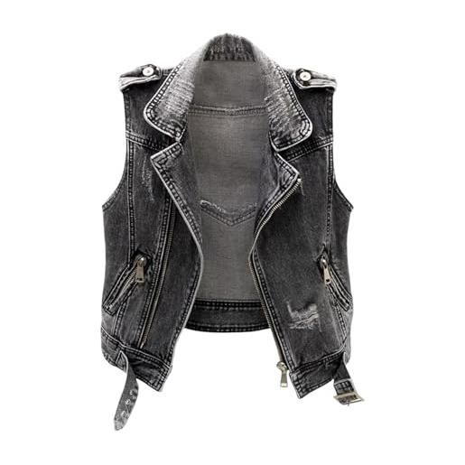 Witorya gilet da donna in denim senza maniche con fori classico ritagliato invecchiato zip corta jeans gilet giacche con tasche, grigio, m