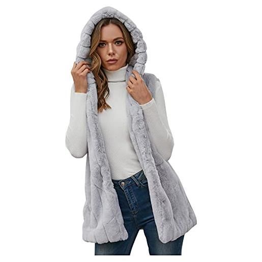 TDEOK gilet in pelliccia sintetica da donna, senza maniche, in finta pelliccia, elegante, in pelliccia, per l'inverno, a001 grigio, s