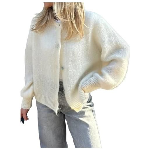 XIXIMAON gilet girocollo donna cardigan in maglia corta a maniche lunghe maglione giacca casual abbigliamento esternale inverno caldo, bianco, s