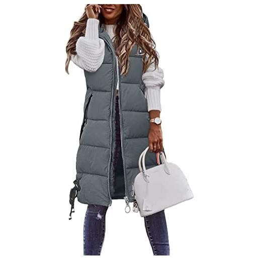 shownicer gilet da donna con cappuccio in piumino senza maniche giacca elegante cerimonia tinta unita zip giacca blouson casuale gilet giacca con tasche a grigio l